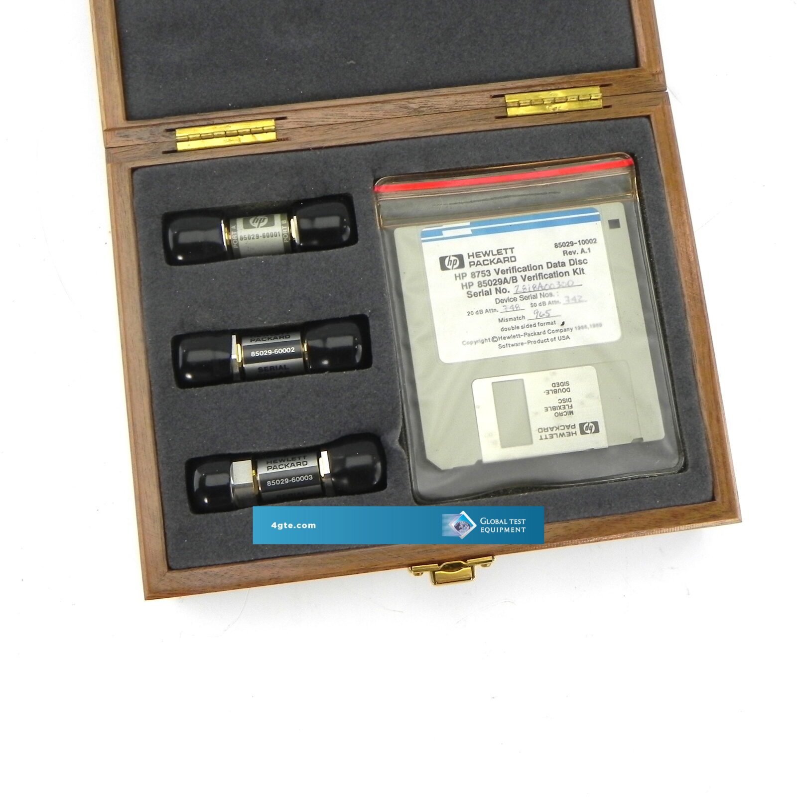 The Agilent 85029B verification kit contains a set of precision 7 mm devices, with data traceable to NIST, used to verify the calibrated performance of an Agilent 8753 measurement system. Measuring known devices, other than the calibration standards, is a convenient way of verifying that the Agilent 8753 measurement system is operating properly. The devices have precision 7 mm connectors and include a 20 dB pad, a 50 dB pad, and a mismatch attenuator. The verification process requires only an Agilent 85031B calibration kit, and an Agilent 85029B verification kit. Option 001 is intended solely for use with the Agilent 8702B lightwave component analyzer. Option 001 adds verification data that is compatible with the Agilent 8702B.